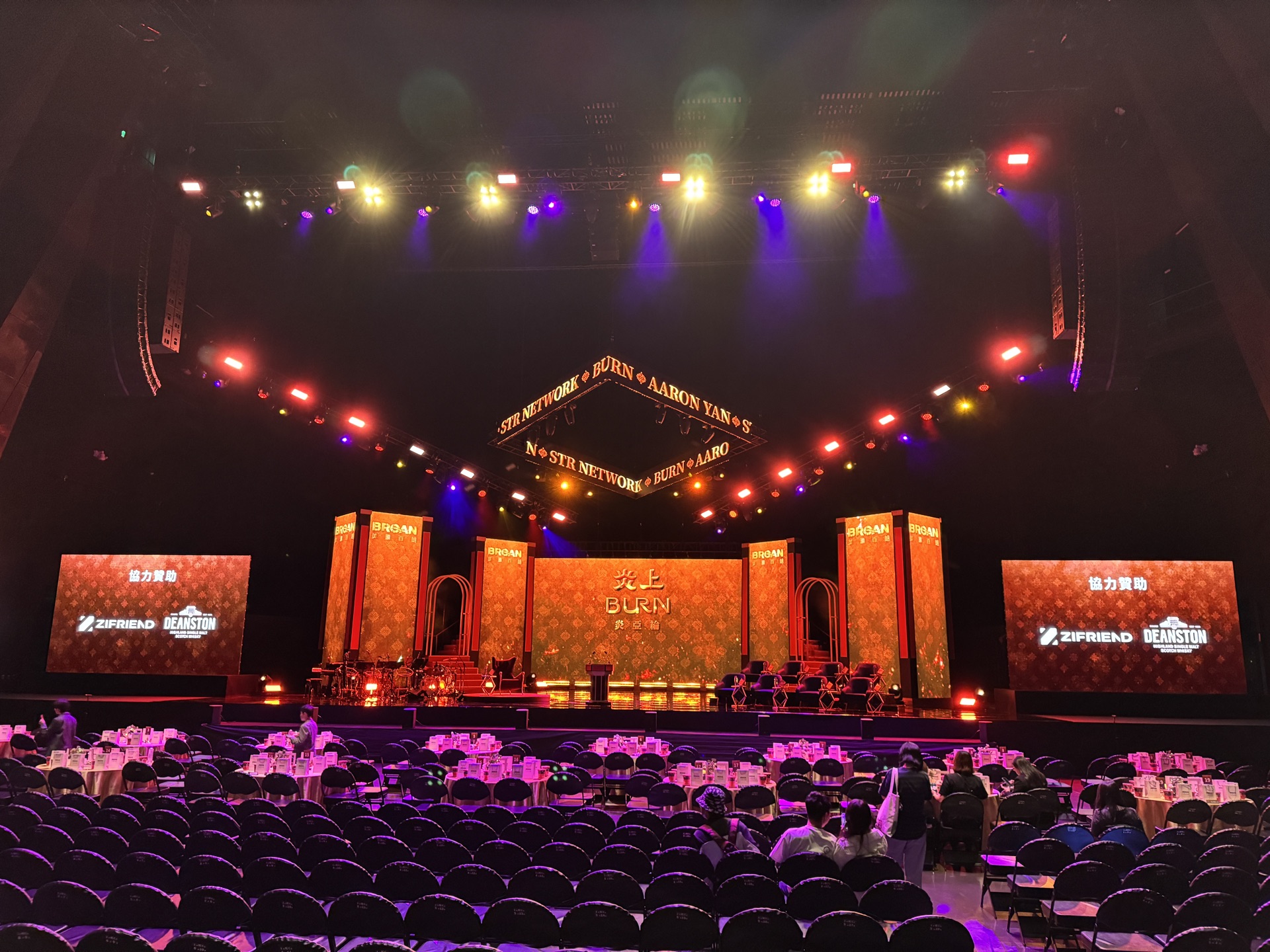 BURN is a large-scale satirical stage production by STR Network, featuring Brian Tseng, Ming-Xuan Zhong, and Aaron Yan, staged at the Taipei Music Center with three performances in an 8,000-seat venue. It fuses striking lighting design and sharp humor to explore online outrage and media spectacle.